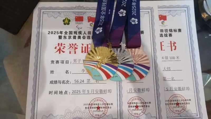 事实上,这并非他首次在全国赛场崭露头角。今年5月,全国残疾人田径锦标赛上,李大炜分别夺得100米金牌、200米铜牌和400米银牌。