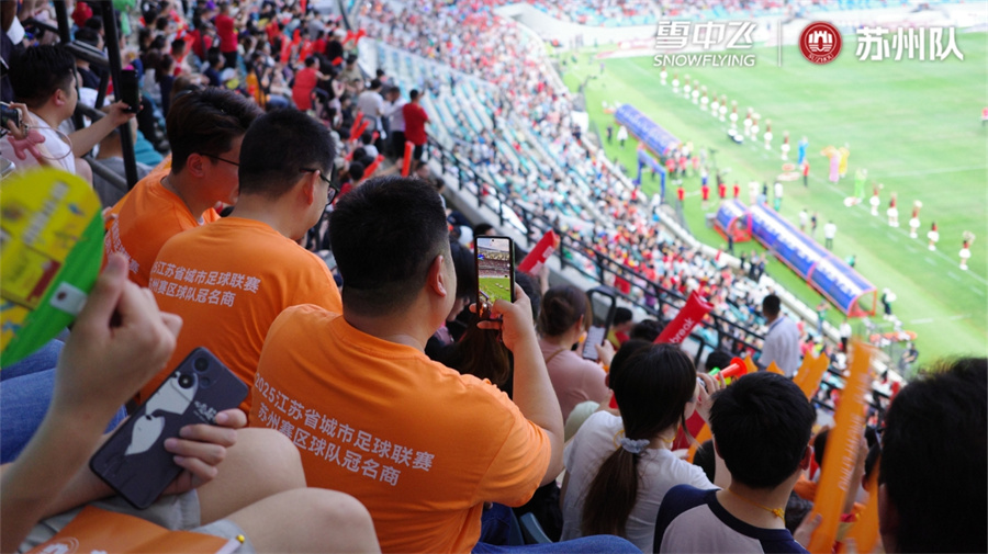 火爆出圈的首届“苏超”联赛战火持续升温!6月29日,备受瞩目的“苏超”第五轮苏州赛区比赛在昆山奥体中心体育场落下帷幕,由雪中飞冠名合作的苏州队迎战扬州队。在现场球迷山呼海啸的热情助威下,苏州队主场作战发挥神勇,打破“3平”,打进3球,拿下3分迎来首场胜利!苏州队目前位列积分榜第6。
