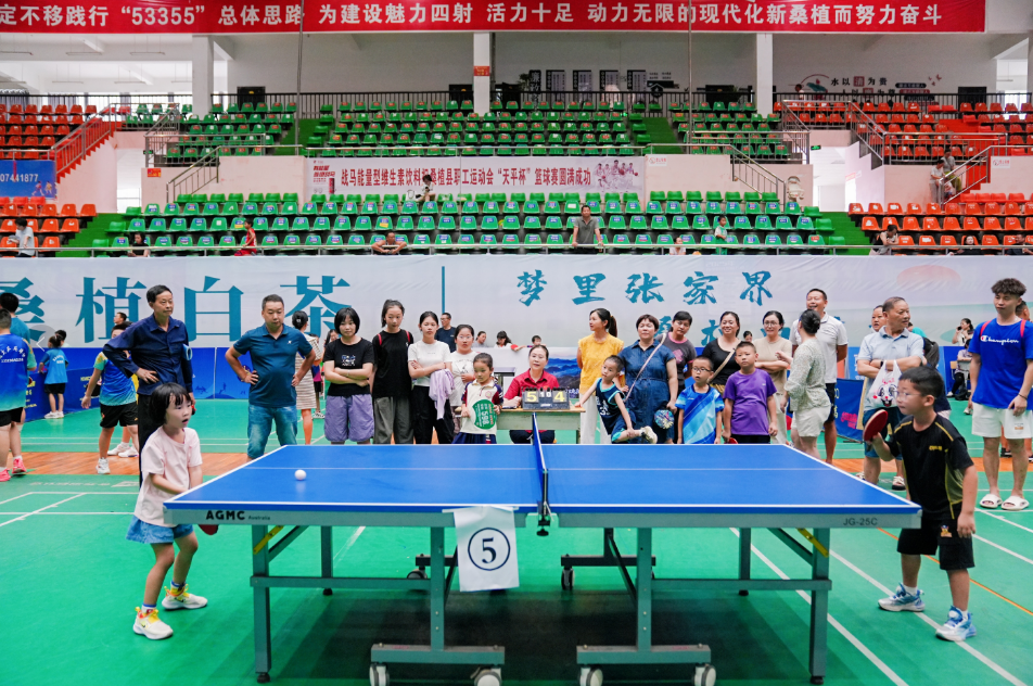 8月8日,正值我国第17个“全民健身日”,2025“中华益动行”社区体育活动(桑植站)暨青少年乒乓球比赛在贺龙体育馆挥拍开赛。