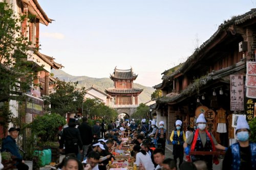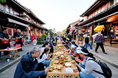 宴席间,唢呐迎宾、山歌敬酒等传统表演轮番登场。身着白族服饰的少女手捧酒盏,敬酒歌声悠扬;选手围坐八仙桌,在声声唢呐中品味养生佳肴。来自广东的车友王先生赞叹:“这不仅是一顿饭,更是一场文化洗礼。每道菜有讲究,每段表演有渊源,让我们真切感受到巍山的文化底蕴。”